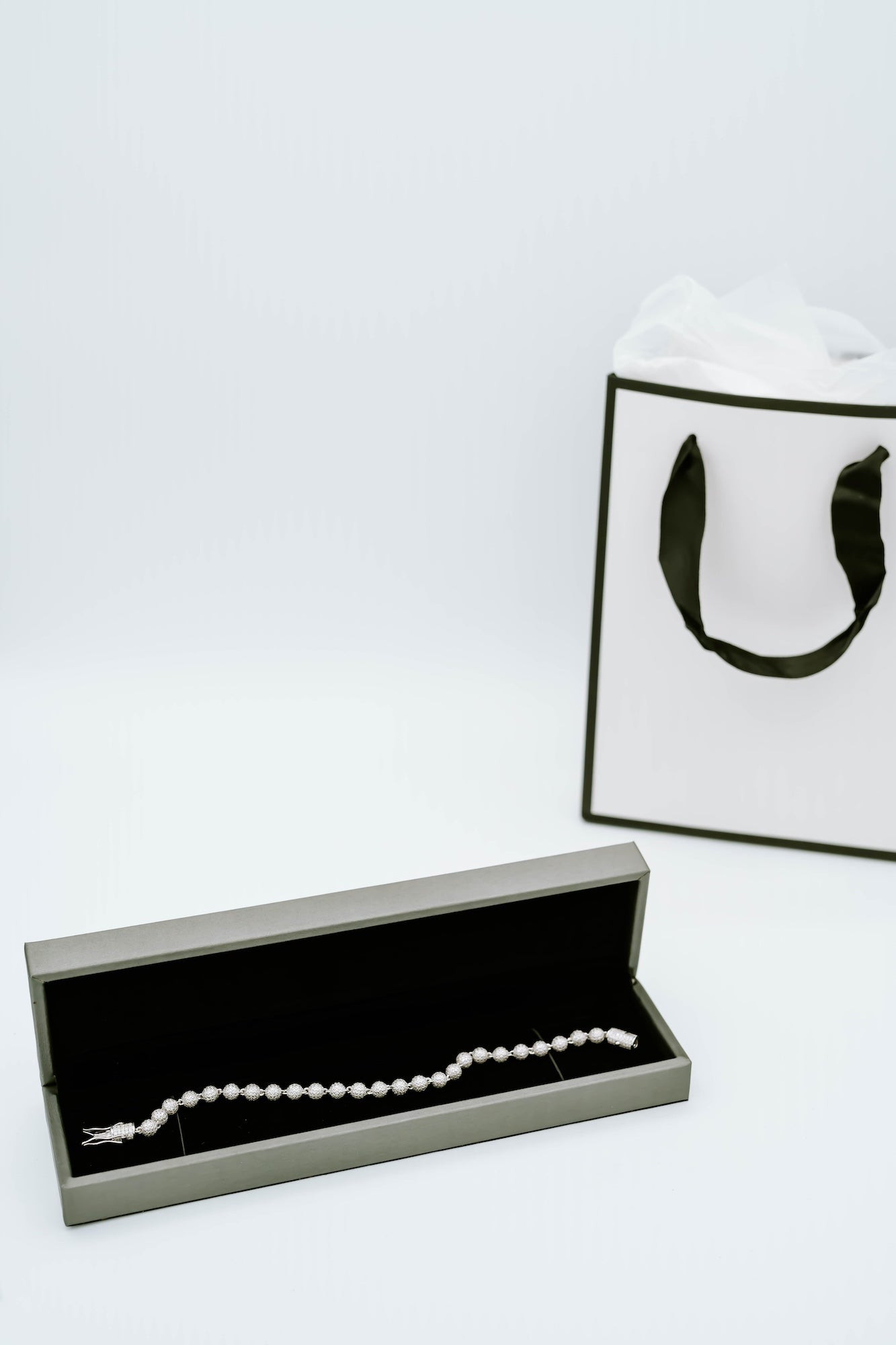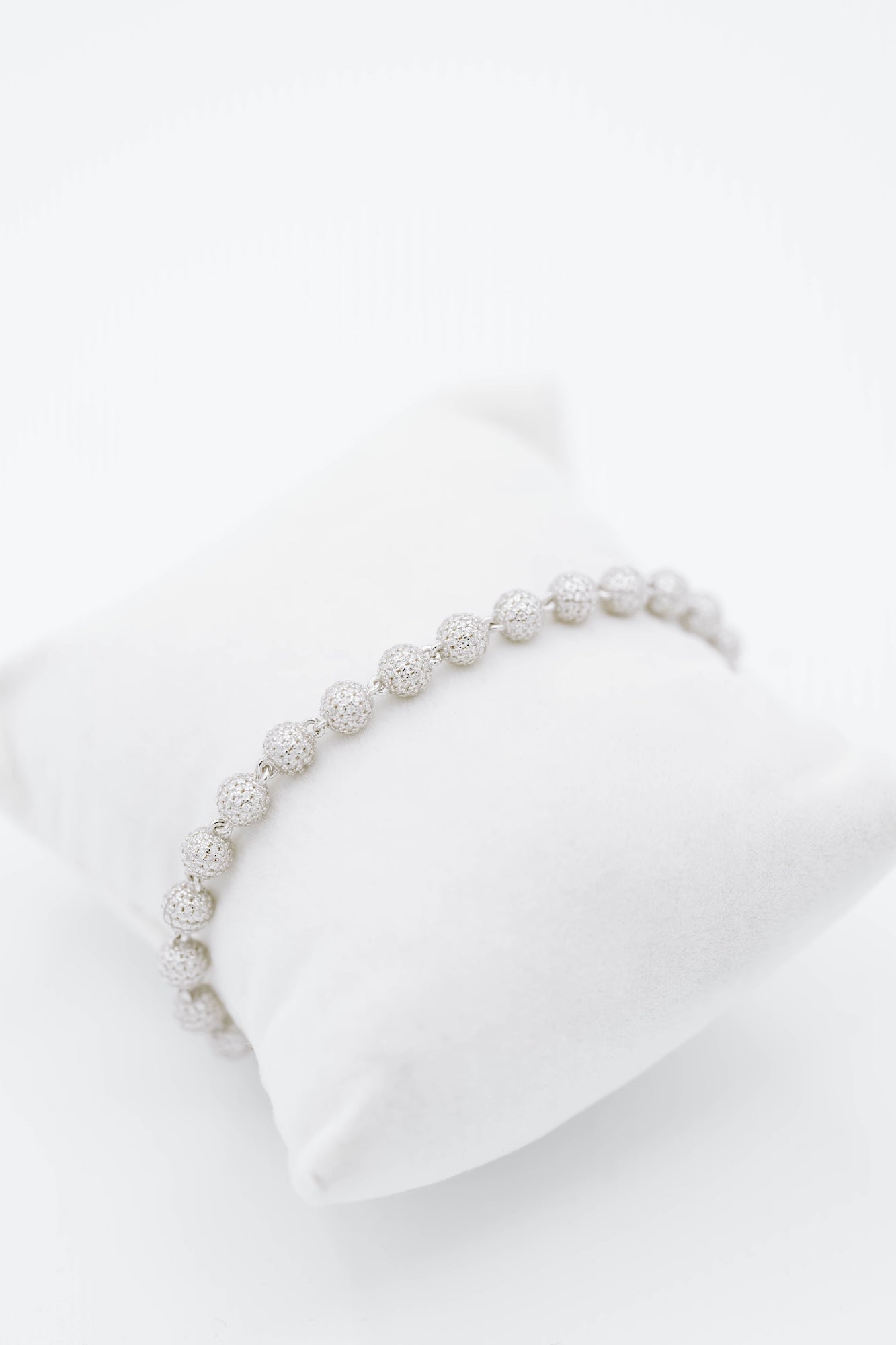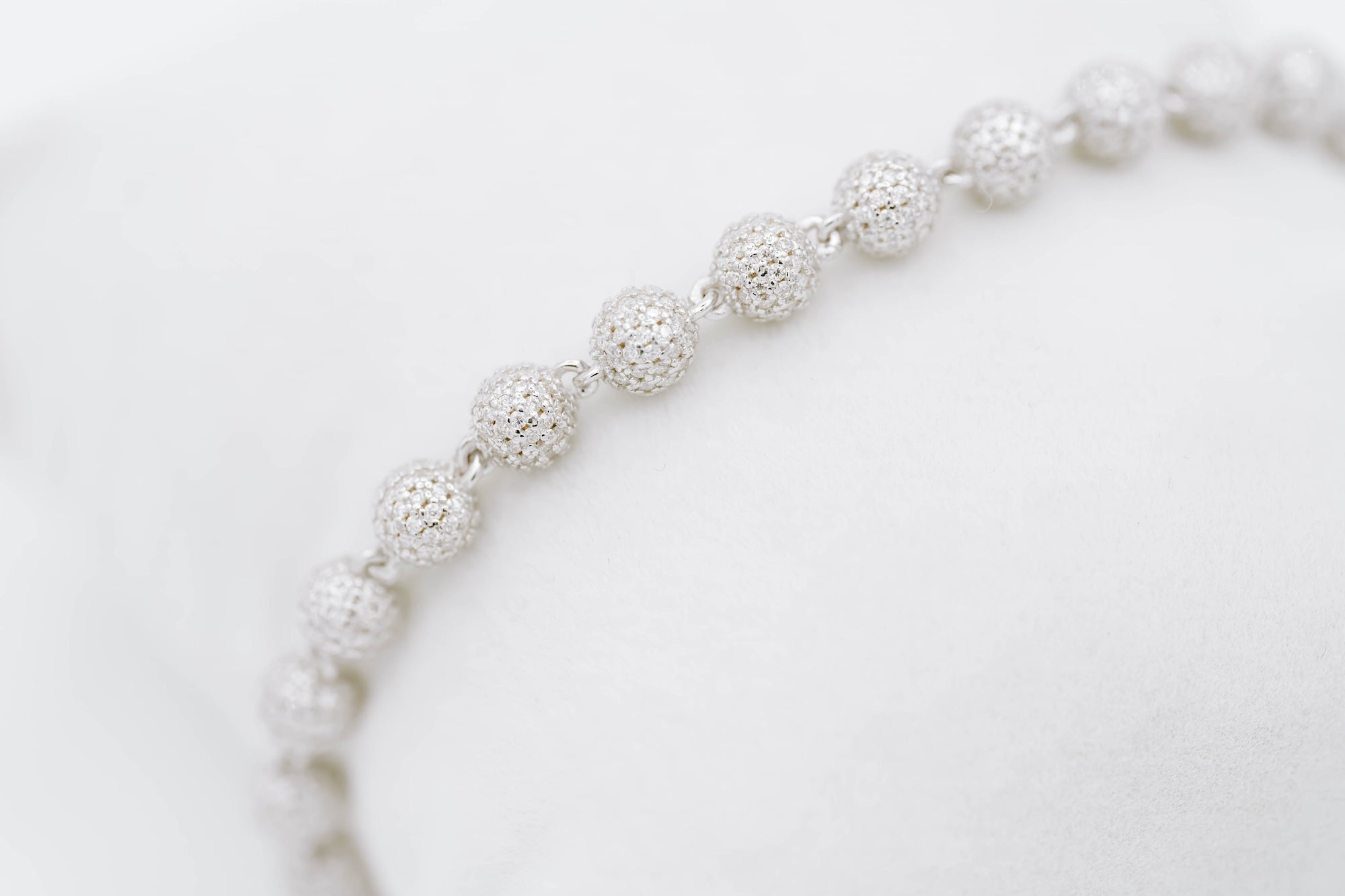 8" long and 5.8mm wide beaded link bracelet featuring moissanites in a 3D setting.
