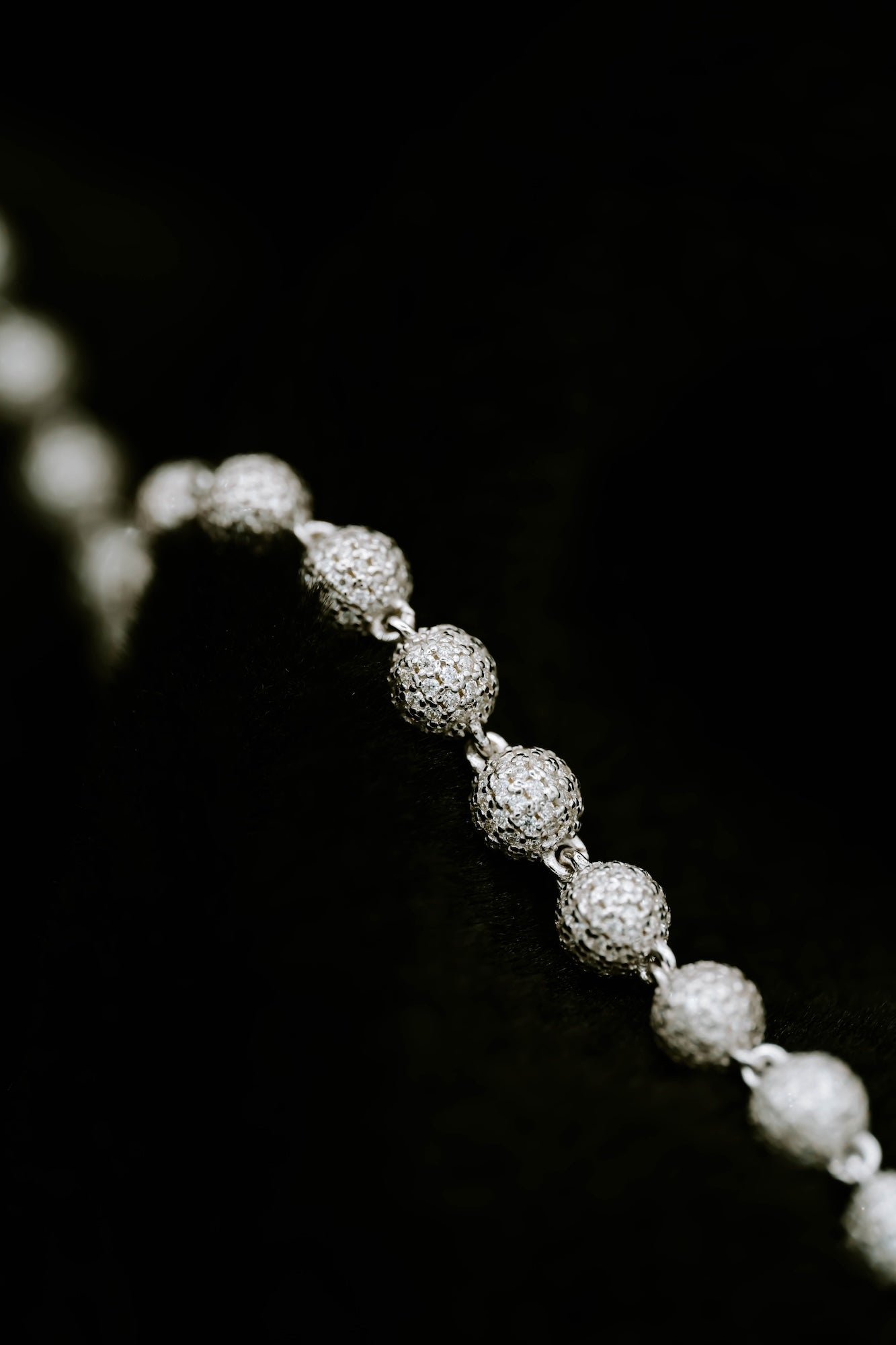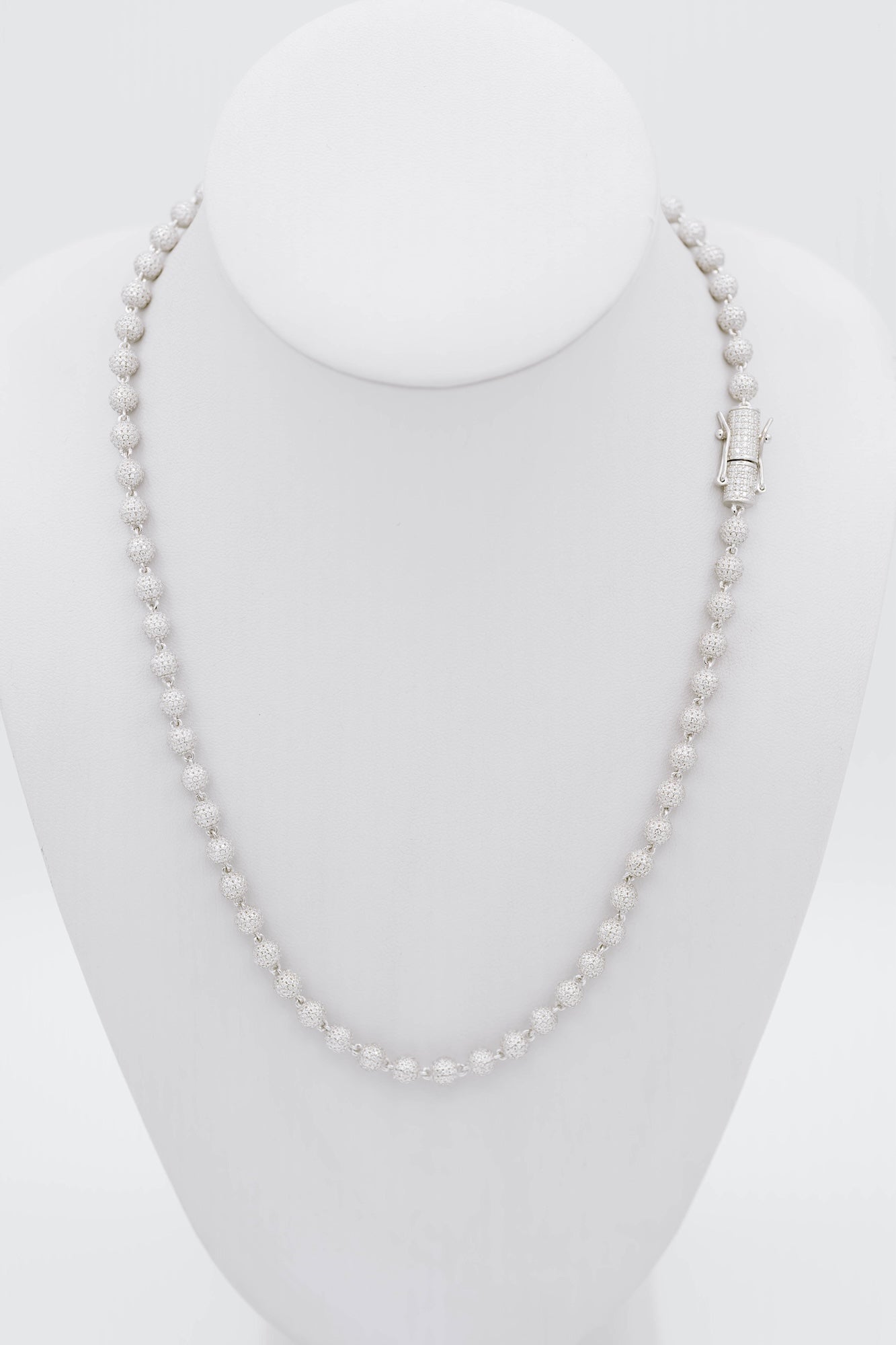 20" long and 5.8mm wide beaded link chain featuring moissanites in a 3D setting.