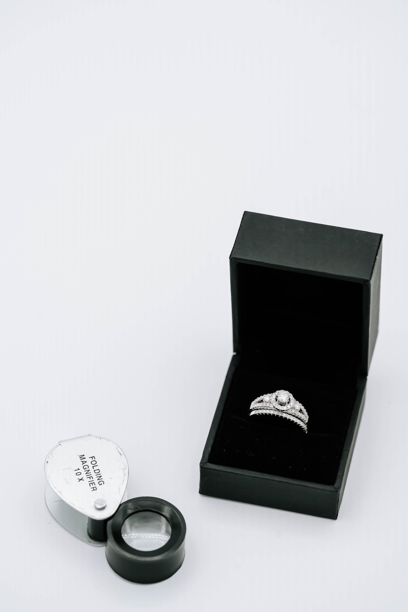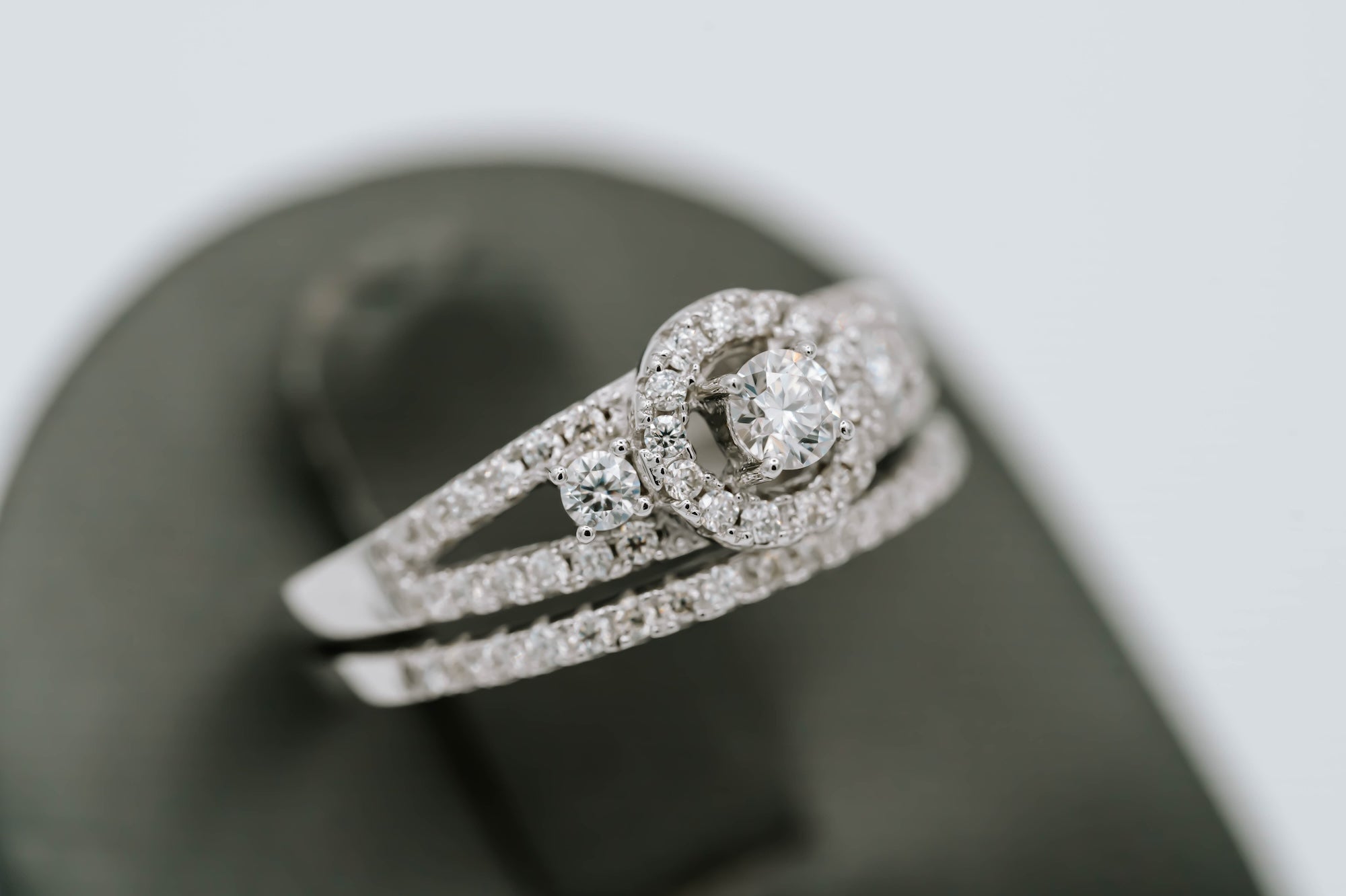 Ladies' moissanite bridal set (ring and band) with halo.