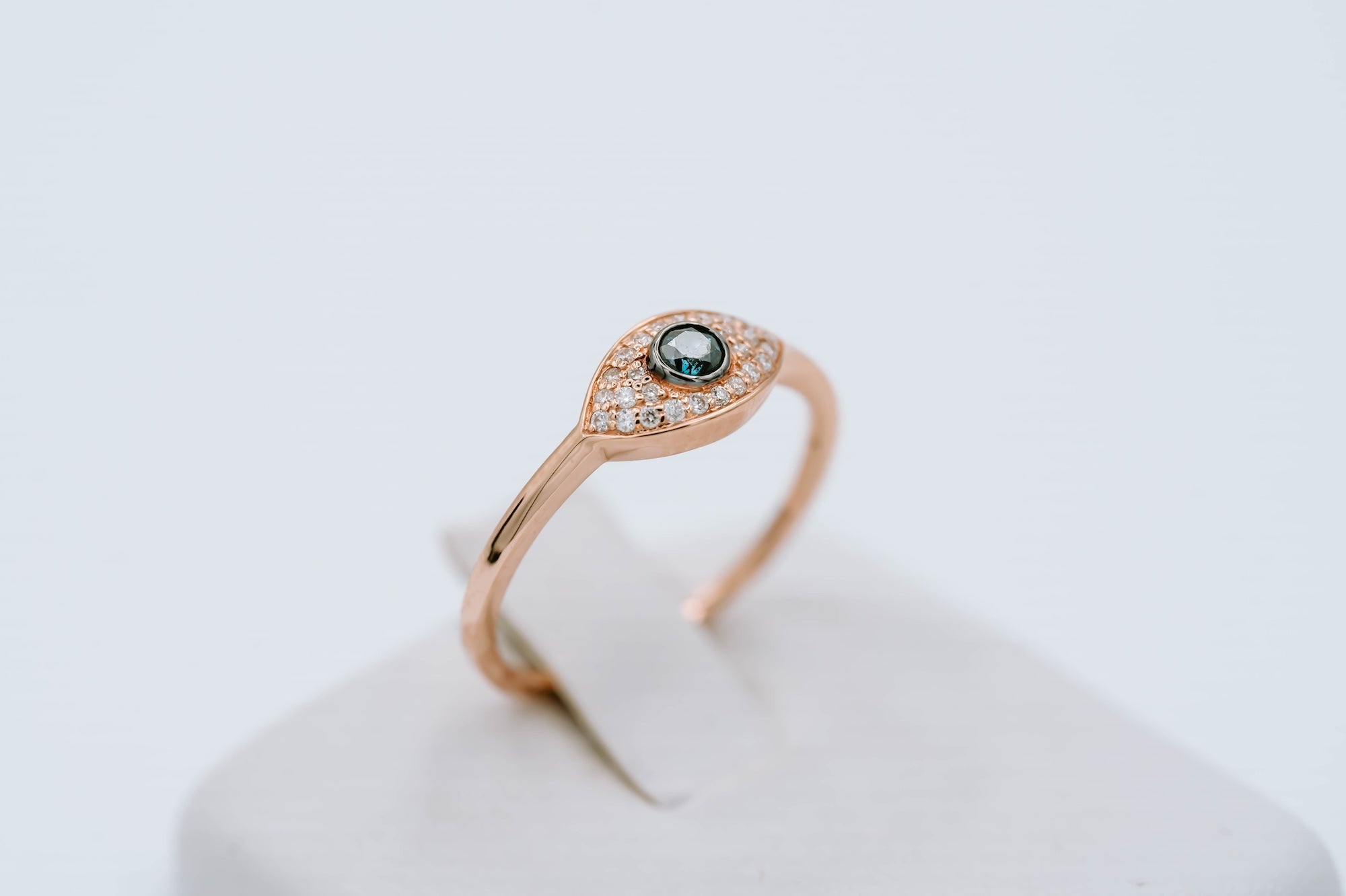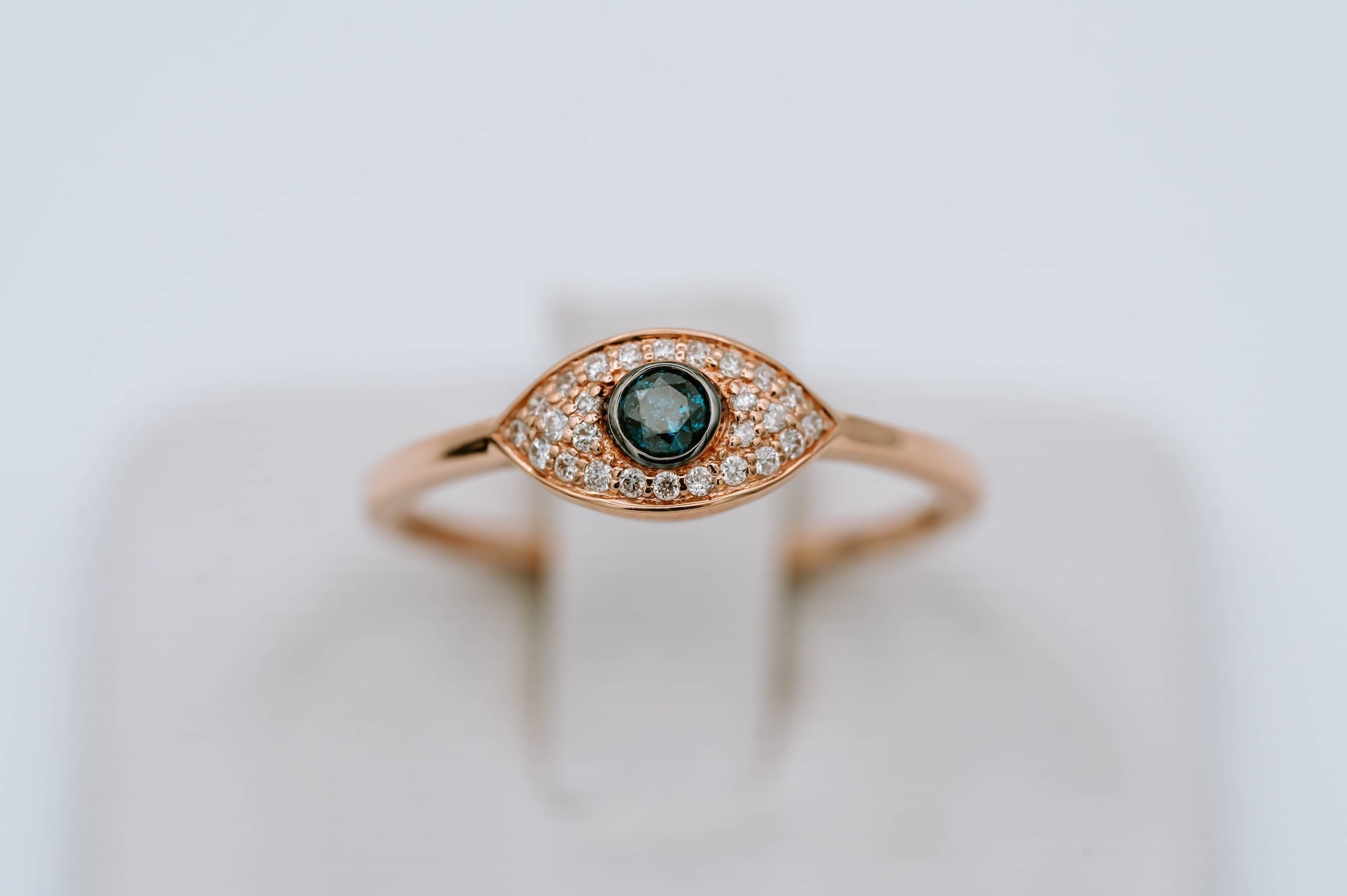Materials: 14K Rose Gold, Diamond, Sapphire